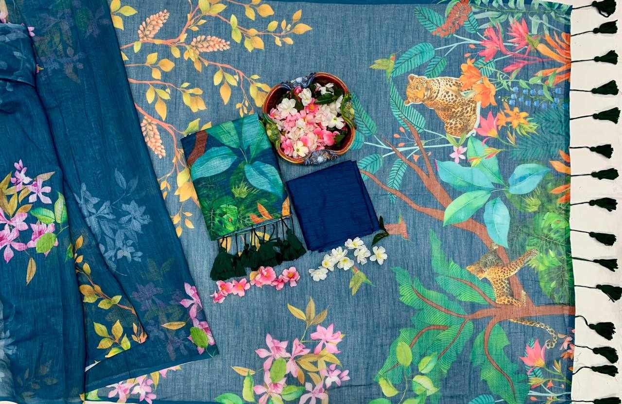 Fabric: Linen Cotton with beautiful digital print and handmade cotton tassels (5.5 m cut)