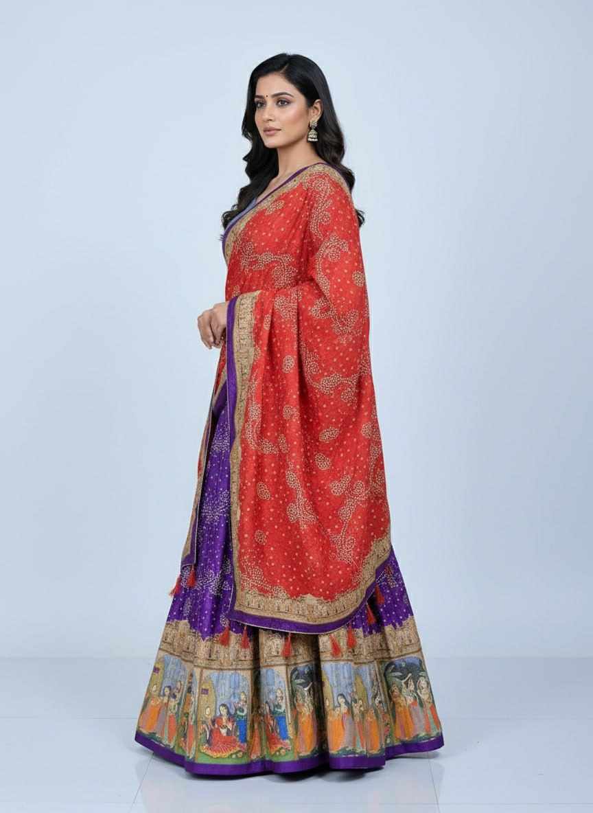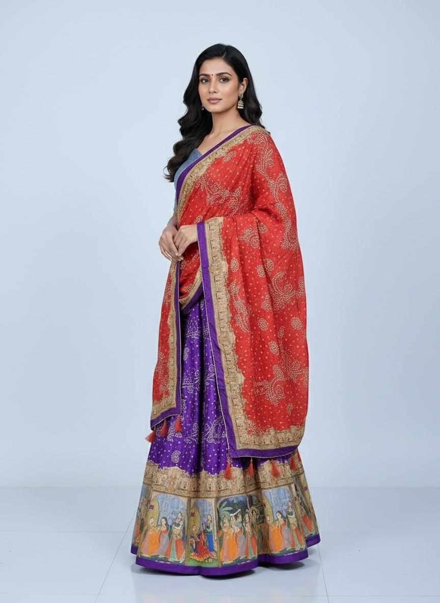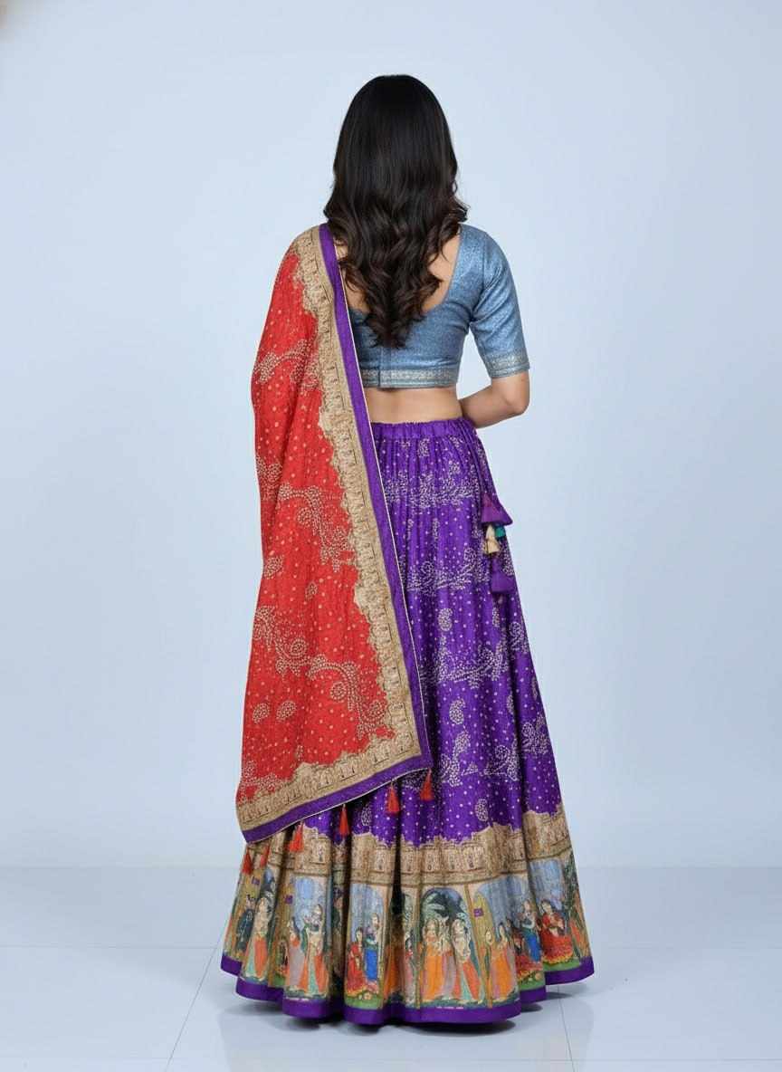 | Name : | PIYU 24-1 Silk Digital Print Purple Lehnga |
