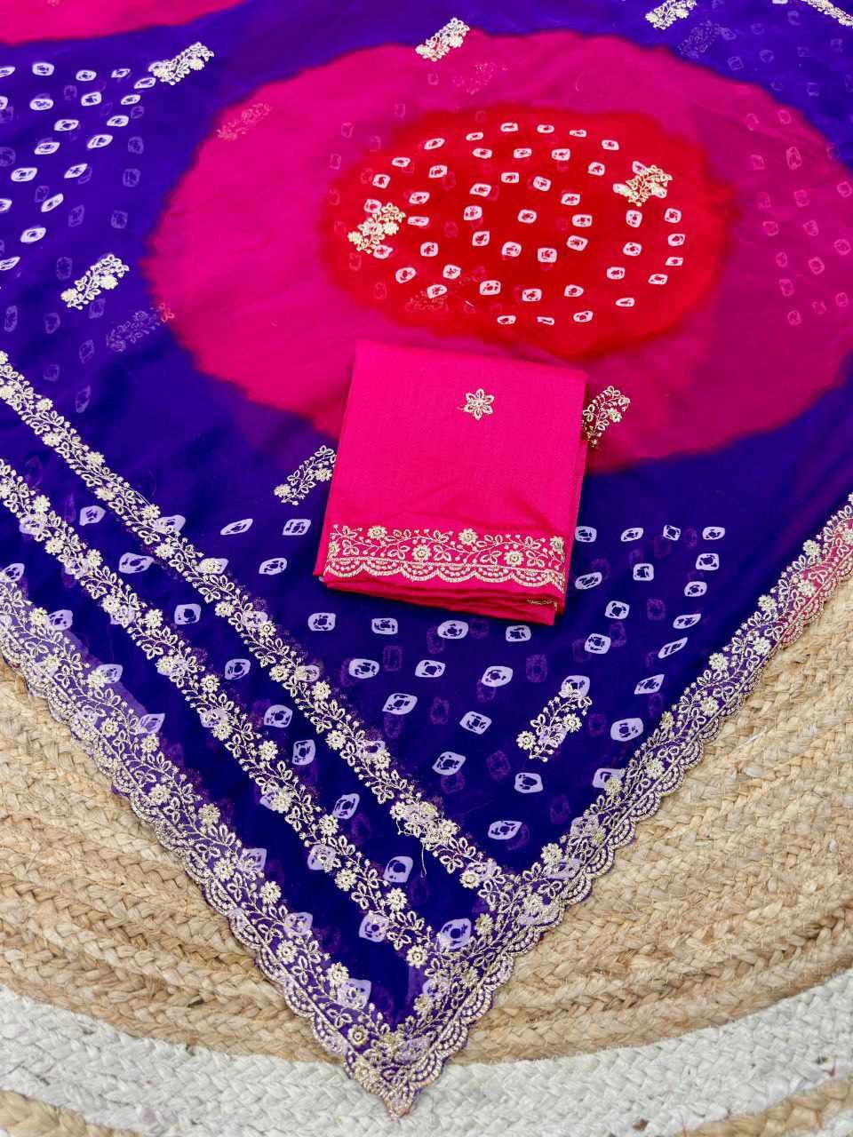 | Name : | PIYU P1051 LERIYA BANDHANI-3 Purple Saree |